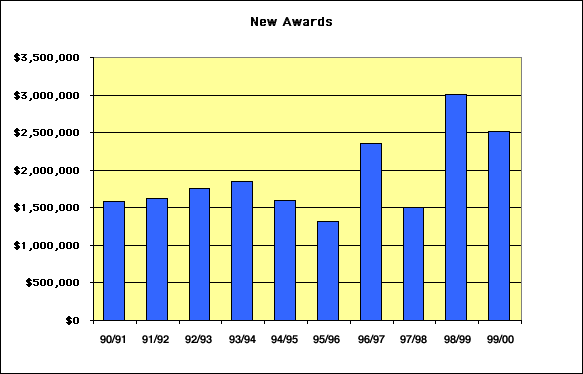 ICS has continued to broaden its research base. One of the more significant awards was a $1,000,000 grant from the William Keck Foundation to establish an Interdisciplinary Program in Seismology and Materials Physics over the next three years. This program was spearheaded by Professors Jean Carlson (Physics), Ralph Archuleta (ICS and Geological Sciences), Jim Langer (Physics), Jacob Israelachvili, (Materials and Chemical Engineering) and David Pine (Materials and Chemical Engineering). The purpose of the program is to integrate our understanding of complex processes in materialsfriction, fracture, and deformationwith our understanding of the earthquake process. In the broadest terms the program will examine the physics of complex processes from the micro- to the macro-scale. ICS serves as the administrative unit for the award. This past year ICS researchers garnered 18 awards totaling $2.66 M dollars from 48 submitted proposals in the amount of $7.12 M dollars.