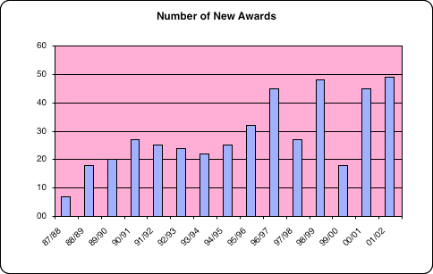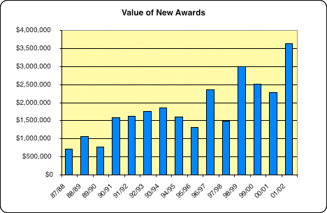 This year we experienced a significant increase in the value of new awards due in part to the transferring of our Director Douglas W. Burbank's proposals from Penn State.