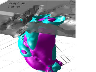Example of numerical model output representing compressional (P) waves (in blue) and shear (S) waves (in purple) radiating outward from the Northridge 1994 earthquake hypocenter. This typifies one aspect of ICS-SCEC research in strong ground motions and wave. researchers, SCEC has been re-funded for another 5 years. Although the number of core and affiliated institutions has now nearly tripled in the "new" SCEC, the fact that ICS researchers still garner ~10% of the total SCEC funding is indicative of the fundamental contributions they make to earthquake science. Concomitantly, our overseas research has expanded considerably in the past few years. Over a dozen research projects are currently running abroad, such that ICS researchers are busy on every continent! Mammalian evolution recorded in the Altiplano, meteorological networks across the Himalaya, chemical fingerprints of ancient asteroids, and geophysical fingerprints of the break-up of continents form the focus of a few of these studies. Such diversity bestows a richness on the research enterprise at ICS and continues to create new avenues for interdisciplinary research and international collaboration. During the past year, the number of undergraduate and graduate students involved in ICS projects increased 40% and 50%, respectively. These undergraduates won awards in the Geological Sciences departments for the outstanding undergraduate field geologist, for the only Honors thesis, and for outstanding academic achievement. Our ICS graduate students won the Geology departmental awards for the best student research paper, for outstanding research in volcanology, for outstanding research in field geology, and for a dissertation of the "highest merit." The challenges that are presented by this expanding enterprise are perhaps not surprising, but they are real. In order to sustain effective interactions among the diversifying array of researchers, efforts to communicate plans, ideas, and results have to be enhanced. The increased flux of proposals (>20%), augmented array of potential funding agencies, and the complexity of administering major collaborative grants routinely require overtime commitments from our administrative staff. Similarly, the success and effectiveness of our computing administration has encouraged researchers to switch to the ICS network, thereby increasing the network size (and administrative work) by doubling the locations served by it and increasing the number of workstations by ~30% in the past year. Despite creating new office space for 5 people within ICS this past year, our success with new grants and initiatives means that the addition of new researchers and technicians to support these research efforts has filled our space to overflowing. ICS's talented and dedicated staff, combined with the flexibility of our researchers, is permitting us, for the present, to meet these challenges. But, given the motivation of our researchers, the demands placed on staff and the requirements for space to conduct research can only be expected to grow. This has been a landmark year for ICS. We have a considerably greater diversity of projects than previously encompassed by ICS, more new funding than ever before, more forms of outreach and national service, more effective use of limited space, and continually enhanced computing and administrative services. Our expectations are rising! |