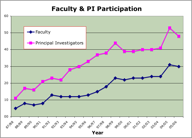 above average. Faculty and PI participation has continued its long-term upward